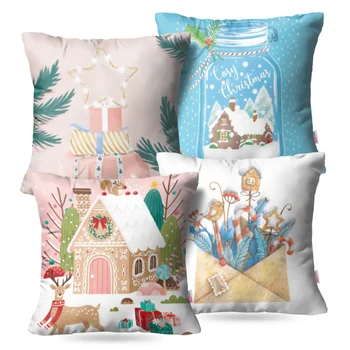 Kit: 4 Capas de Almofada Decorativas Natal Pretty – 45×45