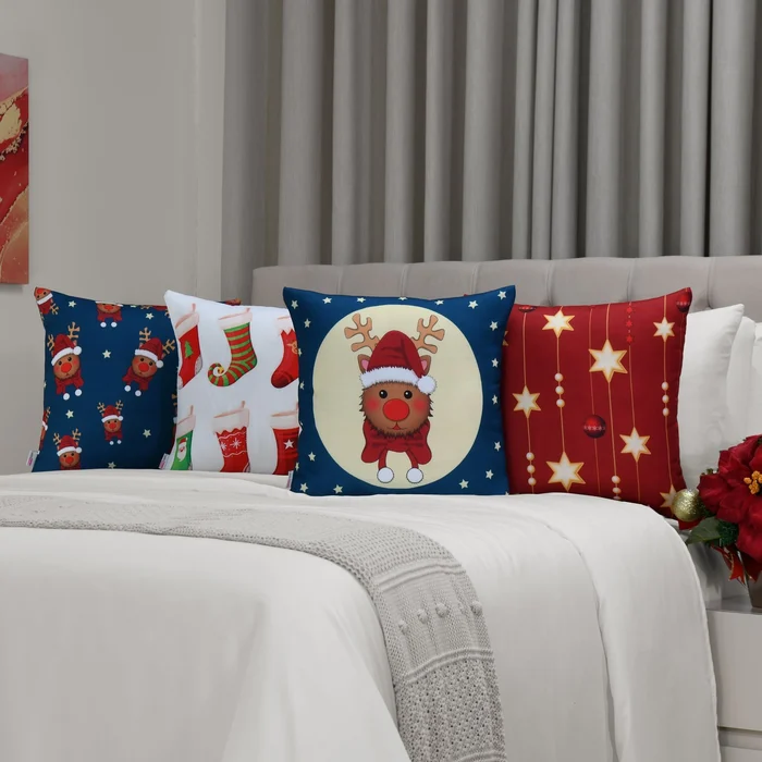 Kit: 4 Capas de Almofada Decorativas Natal Collection Novo – 45×45